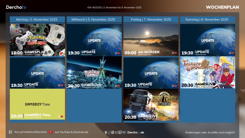 In der neuen Woche gibt es wieder mehr Streams und Videos. Endlich wieder eine komplett volle Woche mit vier Streamingtagen auf Twitch.